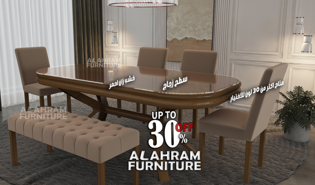 🎉 عرض خاص لفترة محدودة من 🪑 الأهرام للأثاث – اسم له تاريخ 🔹 سفرة مودرن خشب زان ومسطحات ثيه عالية الجودة
