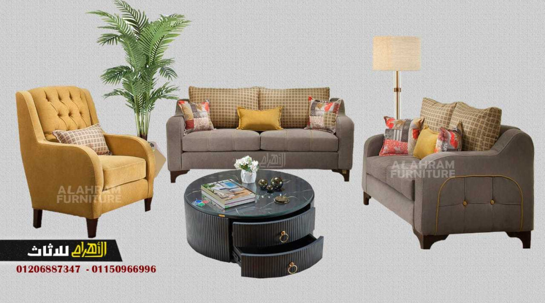 • 2 كنبة + كرسي = 23900 جنيه بدلًا من 32900 بدون ترابيزه هديه