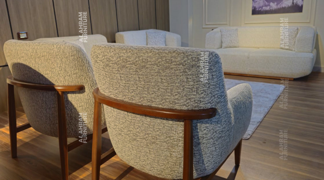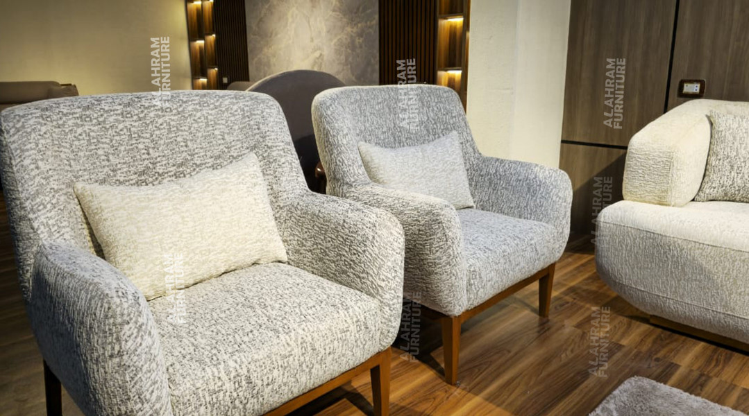 كنبة ثلاثية + كنبة ثنائية + كرسي بسعر 24,900 جنيه (بدون الترابيزة الهدية)